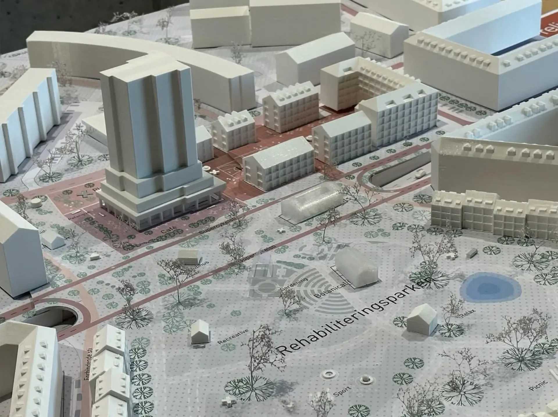 I vores modelværksted omsætter vi idéer til fysiske modeller i både stor og lille skala, fra landskabsmodeller til 1:50 bygningsmodeller. Med 3D-printere kan vi skabe detaljerede prototyper og skræddersy løsninger til dit projekt. Fortæl os dine behov, så hjælper vi med at visualisere og afprøve idéer, så vi kan forstå projektet i fysisk form.